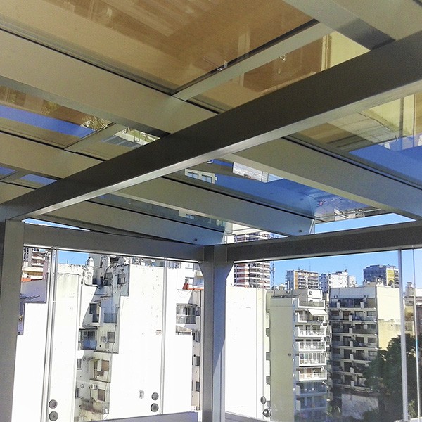Descripción: Sistema de techos de paños fijos versátil, estético y seguro que permite mediante una amplia variedad de diseños, lograr ambientaciones de máxima luminosidad y transparencia. Es un producto totalmente a medida, y se complementa con los cerramientos Balconfort y Balconflex en casos como últimos pisos o espacios descubiertos en donde hay que construir una estructura y techo para soportar dichos sistemas. Estos techos vidriados logran aprovechar el espacio, la vista y la luz al máximo, siempre con la mayor seguridad.
