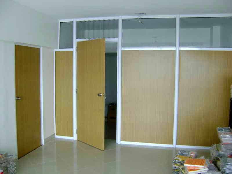 Descripción: Armados sobre estructura de Aluminio en modulos independientes, Perfileria con columnas y zócalos pasacables con burletes y tapas desmontables. Diversidad de diseños y terminaciones: Prepintado al horno con recubrimientos Acrílicos o Epoxi, Anodizados (proceso electrolítico). Módulos Ciegos : Paneles melamínicos (compactos de 18mm.) Placas de revestimiento color con aislante interior Módulos Vidriados: Cristales Línea FLOAT de V.A.S.A. (incoloros o tonalizados) Vidrios Fantasía Módulos Mixto: Con combinación de Materiales anteriormente mencionados Puertas: Placas (enchapadas Ídem Paneles) Combinadas (Aluminio y Vidrio) De Cristal Templado